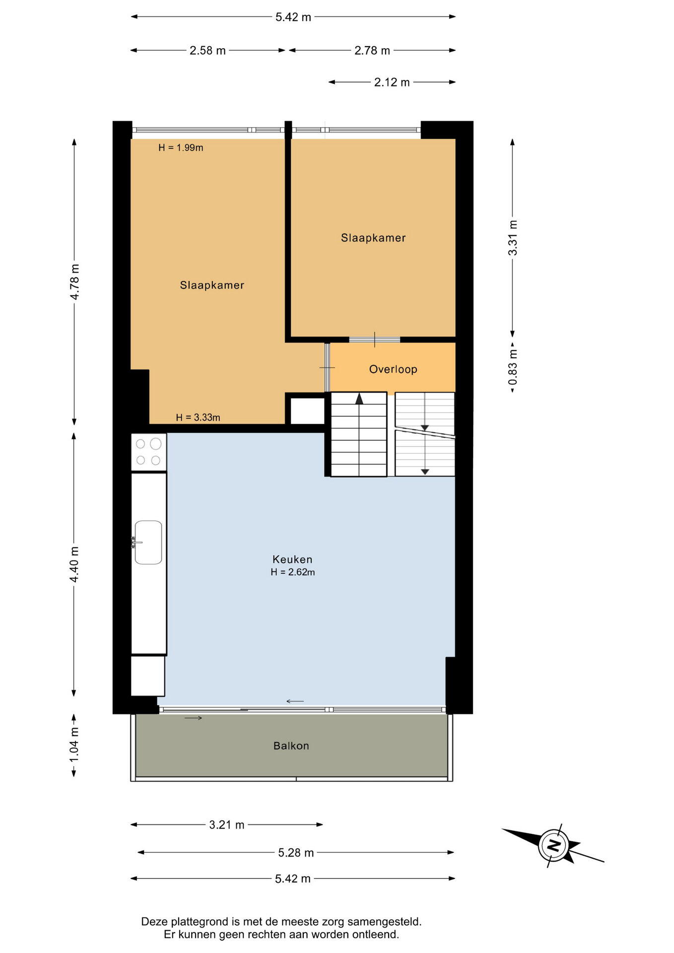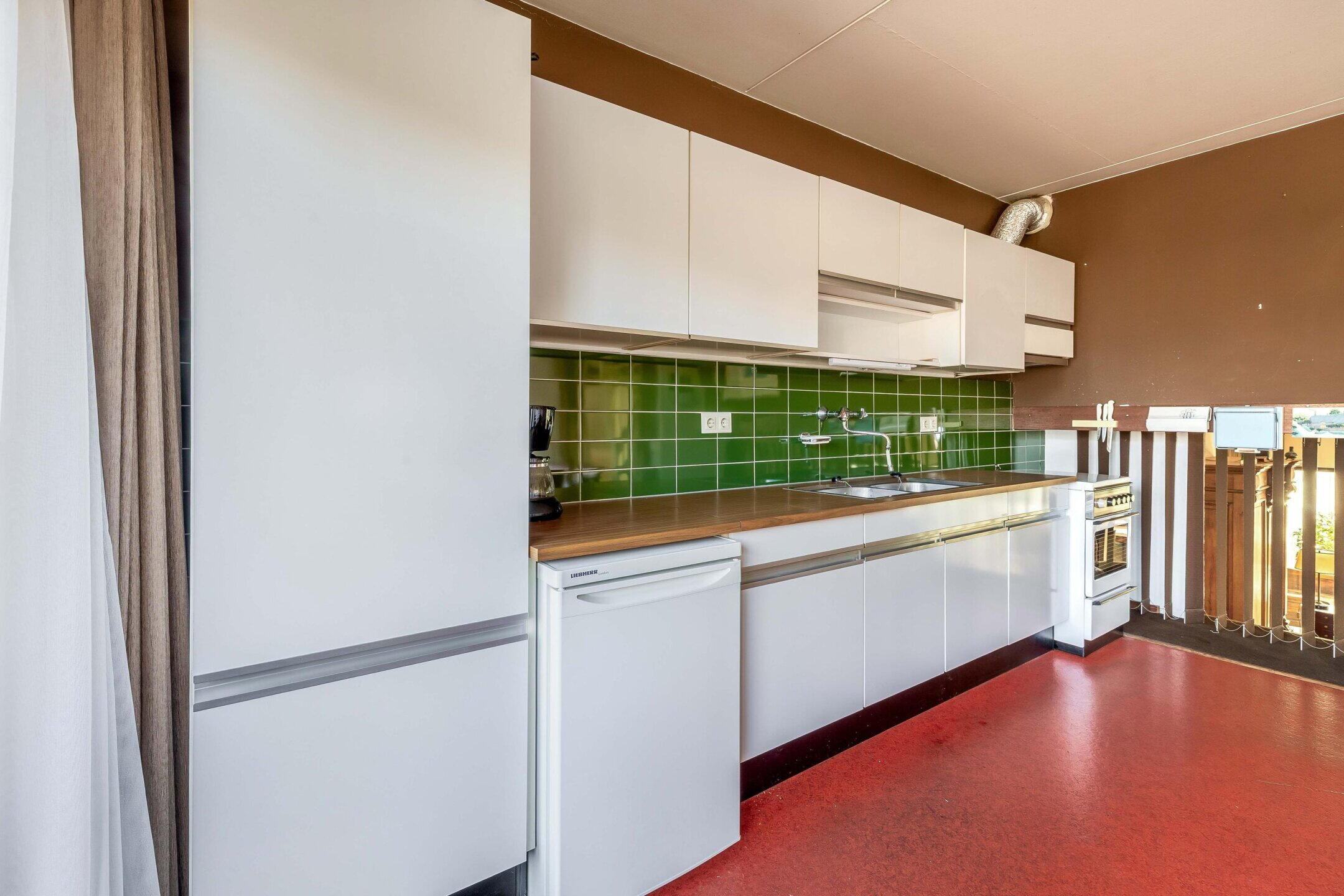 Op deze verdieping bevindt zich de leefkeuken. De keuken biedt voldoende ruimte voor een praktische inrichting en vormt een fijne plek om te koken en samen te komen. Vanuit de keuken is er een mooi vrij uitzicht naar de voorzijde en inkijk in de straat. Het balkon aan de voorzijde is bereikbaar vanuit de keuken en geeft je de ruimte om heerlijk naar buiten te stappen en te genieten van een kop koffie in de zon.
