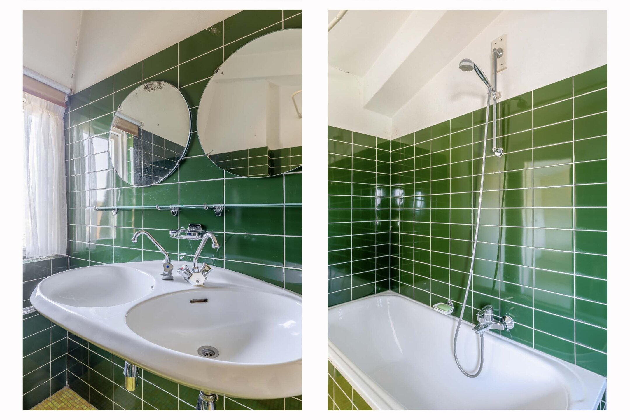 - Ligbad, toilet, dubbele wastafel