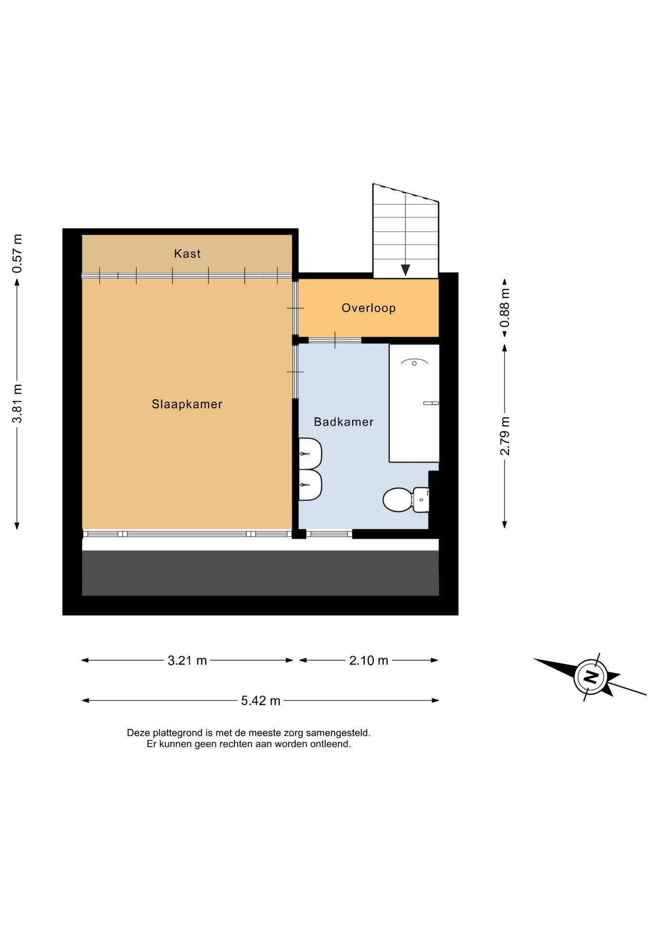 Deze verdieping beschikt over de 3e slaapkamer en de badkamer. Deze verdieping biedt daarmee een praktische indeling en kan bijvoorbeeld gebruikt worden als hoofdslaapkamer met aansluitend de badkamer.