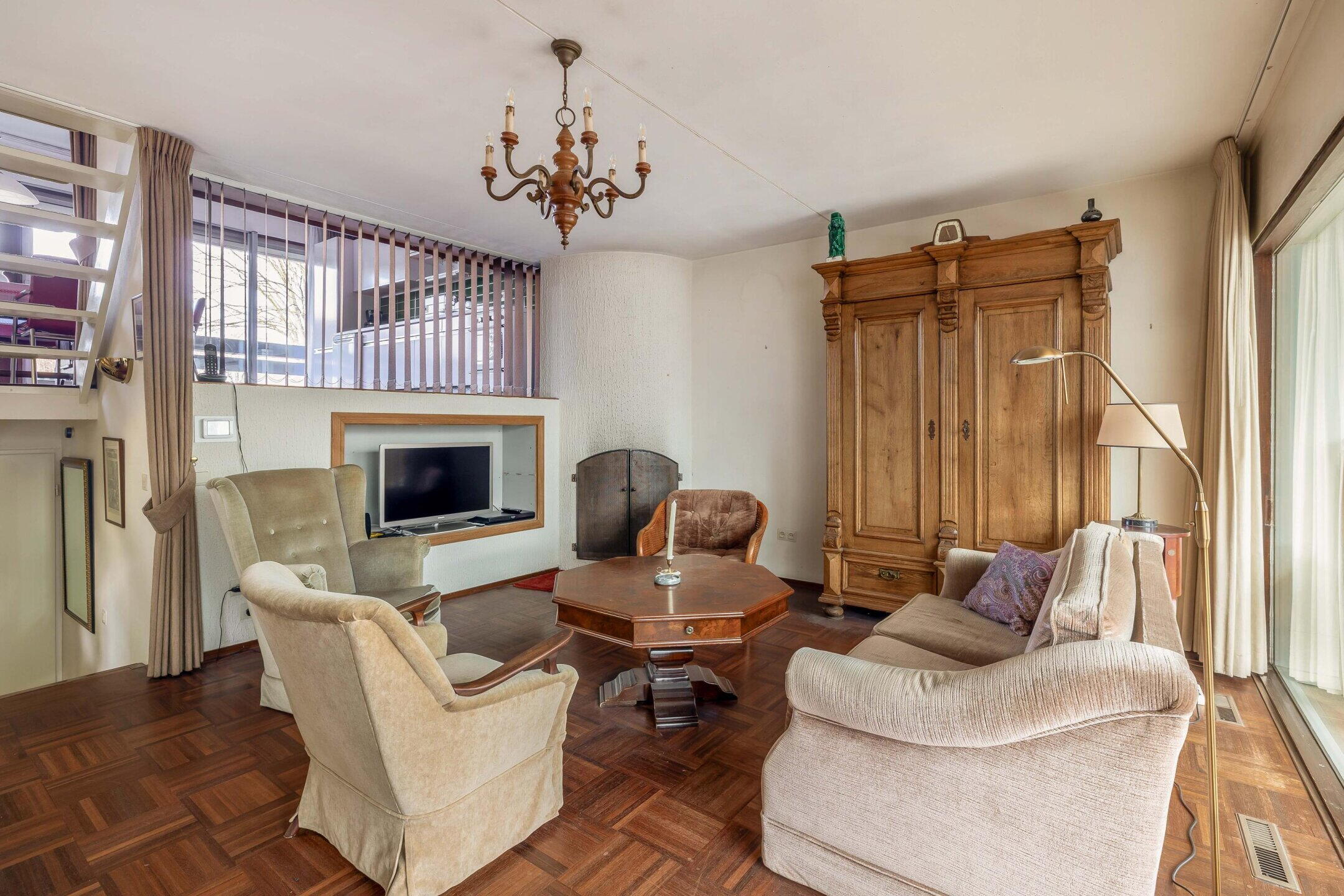 De woonkamer vormt het centrale leefgedeelte van de woning en biedt volop ruimte voor een comfortabele zithoek. Dankzij de grote raampartijen geniet je hier van een prettige lichtinval en een open, ruimtelijk gevoel. Tevens bevindt zich in de woonkamer een sfeervolle haard, heerlijk voor de koude wintermaanden.